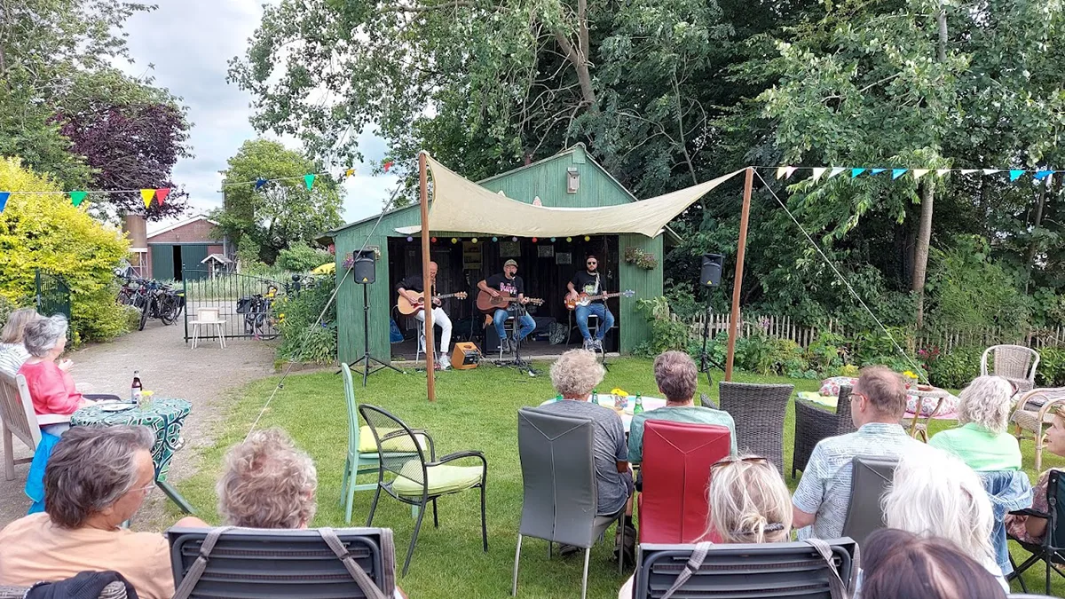 Geniet naast de muziek ook van de afwisselende tuinen met borders met veel bloeiende planten. De tuineigenaren vertellen graag over hun tuin.